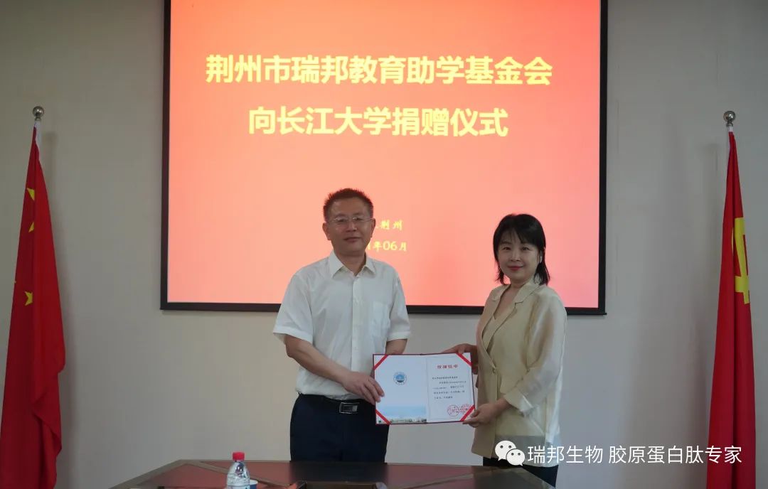 2021年6月23日荊州市瑞邦教育助學基金會與長江大學教育發展基金會在長江大學簽訂捐贈協議并頒發捐贈證書。本次瑞邦教育基金會捐款5萬余用于資助長江大學品學兼優的家庭經濟困難學生,瑞邦基金會執行理事鄒嶸對資助學生提出希望,鼓勵他們要發奮進取,將來做一個對國家、對社會有用的人。本次儀式還為今后的合作奠定了基礎,確定相互扶持方向,并共同探討研發科研前景。